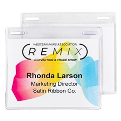 Horizontal badge holders are great for meetings, trade shows and special events. Choose from single, double, or multiple slots. Holes are also available either by themselves or along with slots. These badge holders work great with almost any of our lanyards, cords and Stick-n-Stack ribbons! Badge measurements are based on insert size.